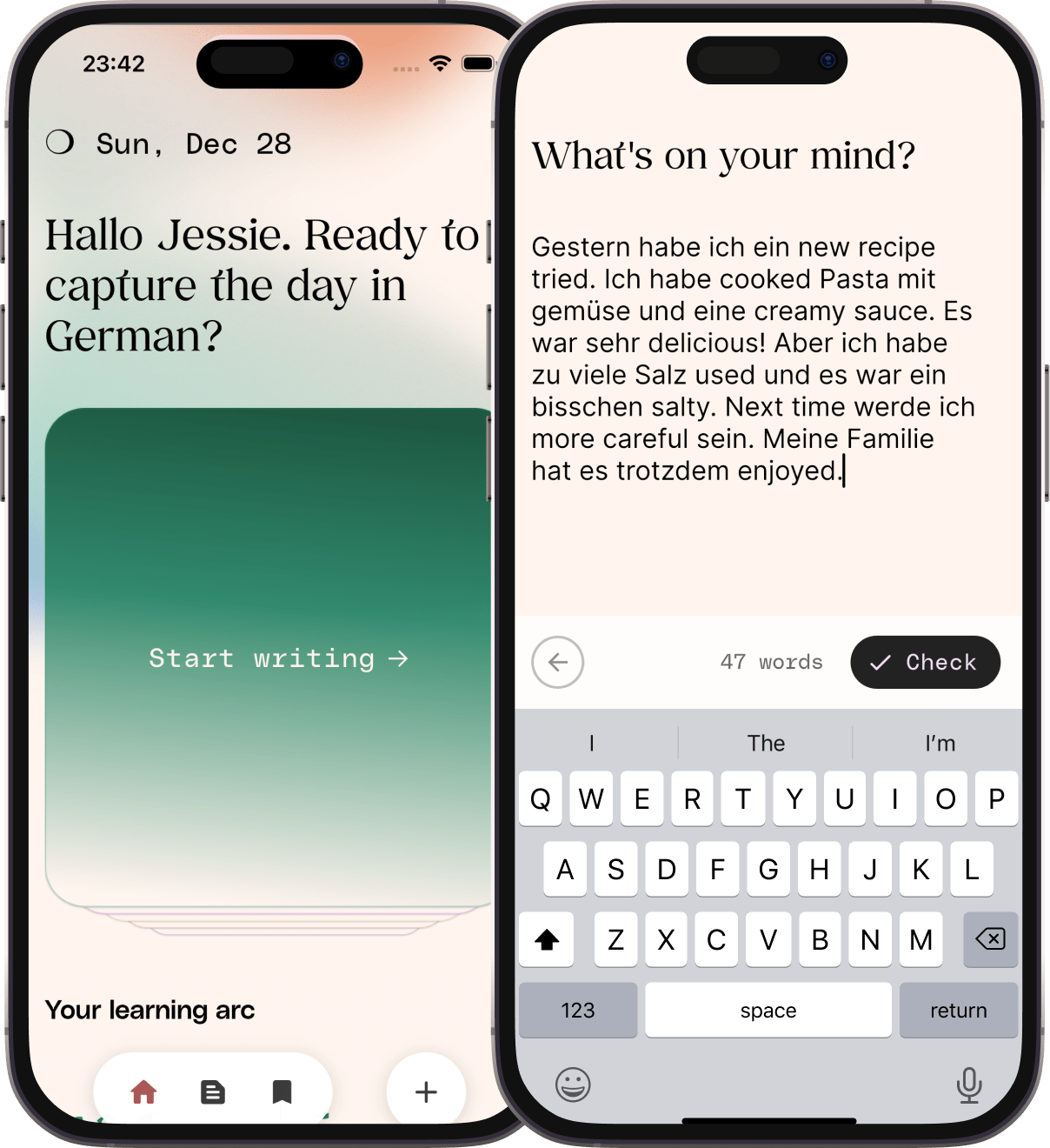 Write in the language you’re learning. Switch to English when you don’t know a word.